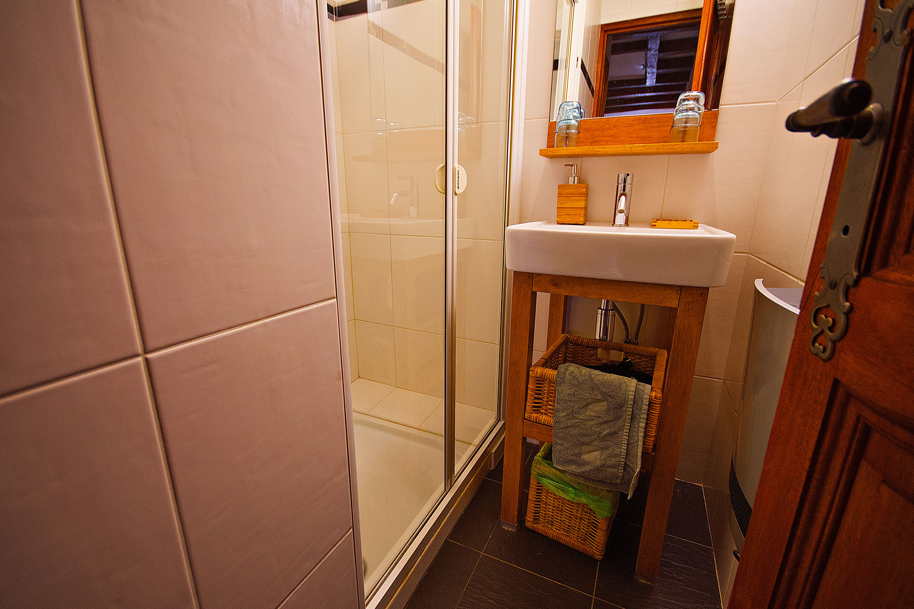 A l'étage : 2 chambres avec lits doubles, toilettes, une salle de douche partagée et un toilette indépendant